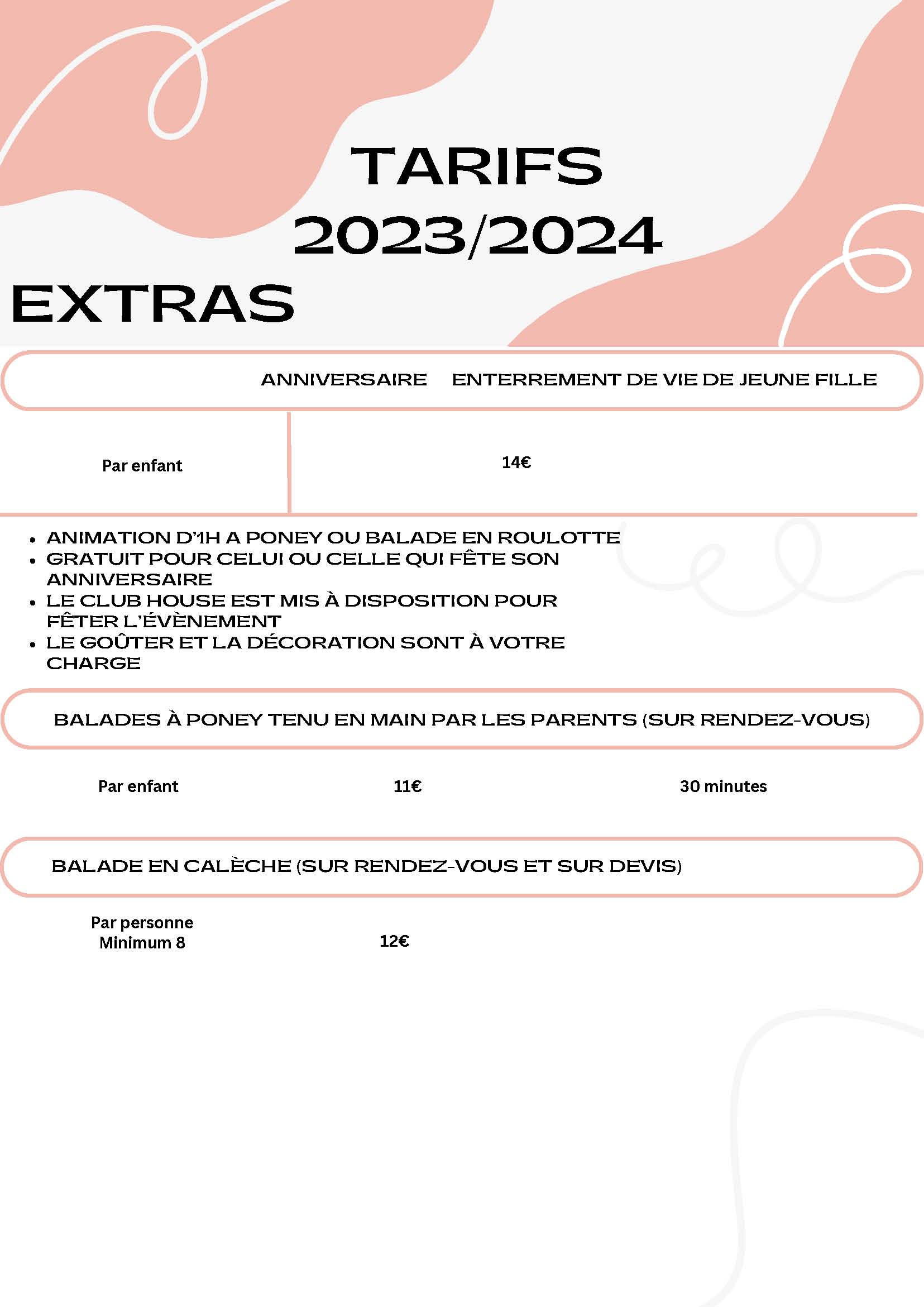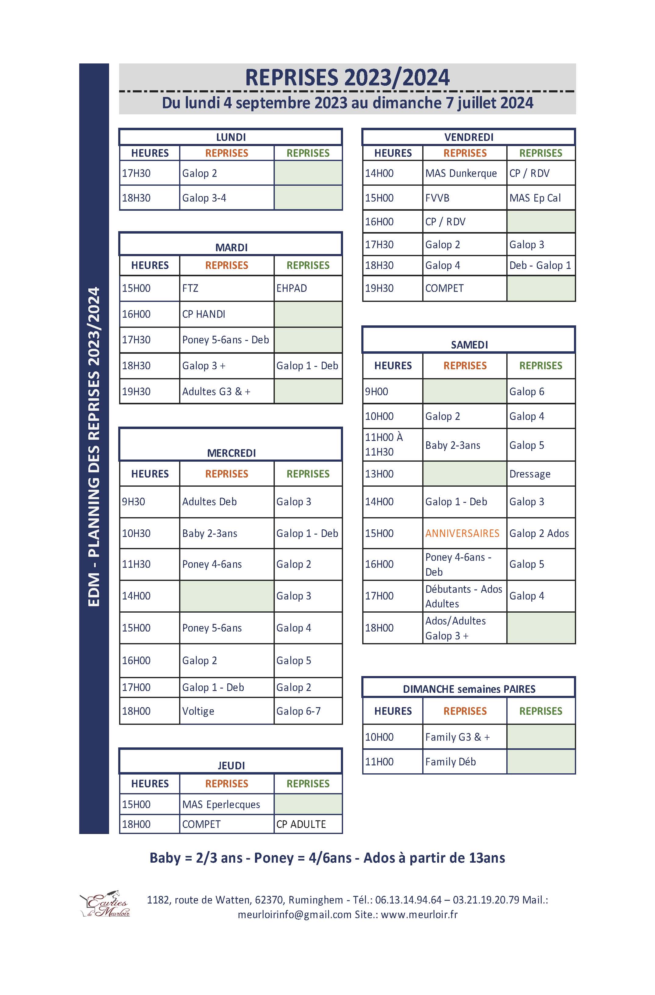 Pour information, tarifs des Ecuries du Meurloir sont applicables à partir du 1er juillet 2023